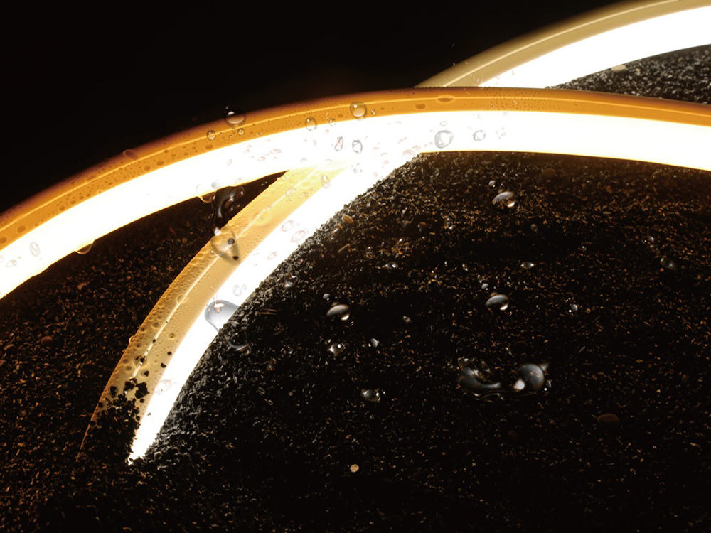 発光面に対して上下方向への曲げが可能で、自由なライン演出が行えます。LEDチップの粒感が一切見えないため、滑らかで高級感のある美しい光のラインを実現できます。